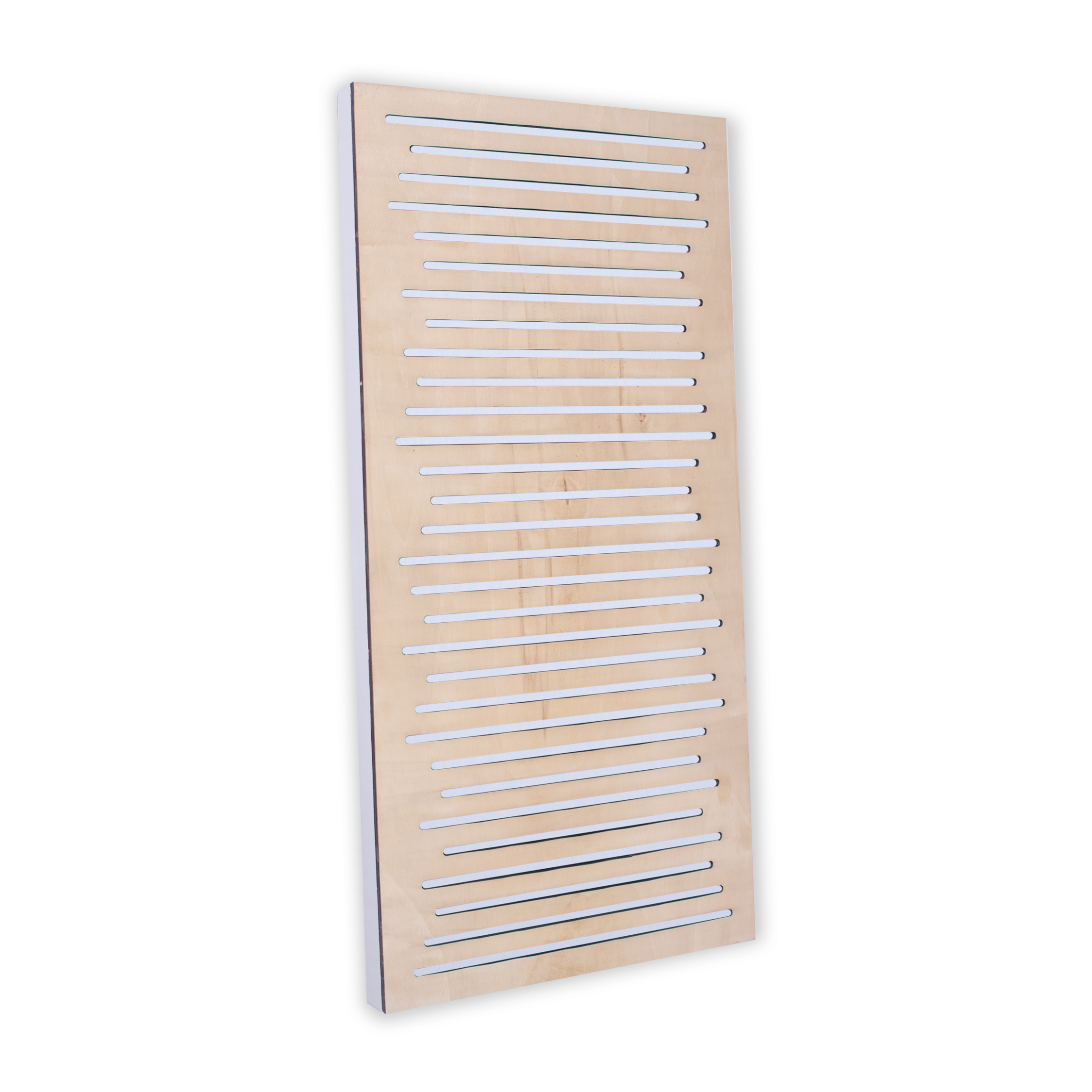 Il Flat Panel con Filtro è un pannello fonoassorbente di alta gamma composto da una base in tessuto Casual e da un elegante pannello sagomato in legno di pioppo applicato frontalmente. Questa combinazione valorizza al massimo sia l'estetica che la funzionalità del trattamento acustico, offrendo un perfetto equilibrio tra assorbimento sonoro e diffusione controllata.