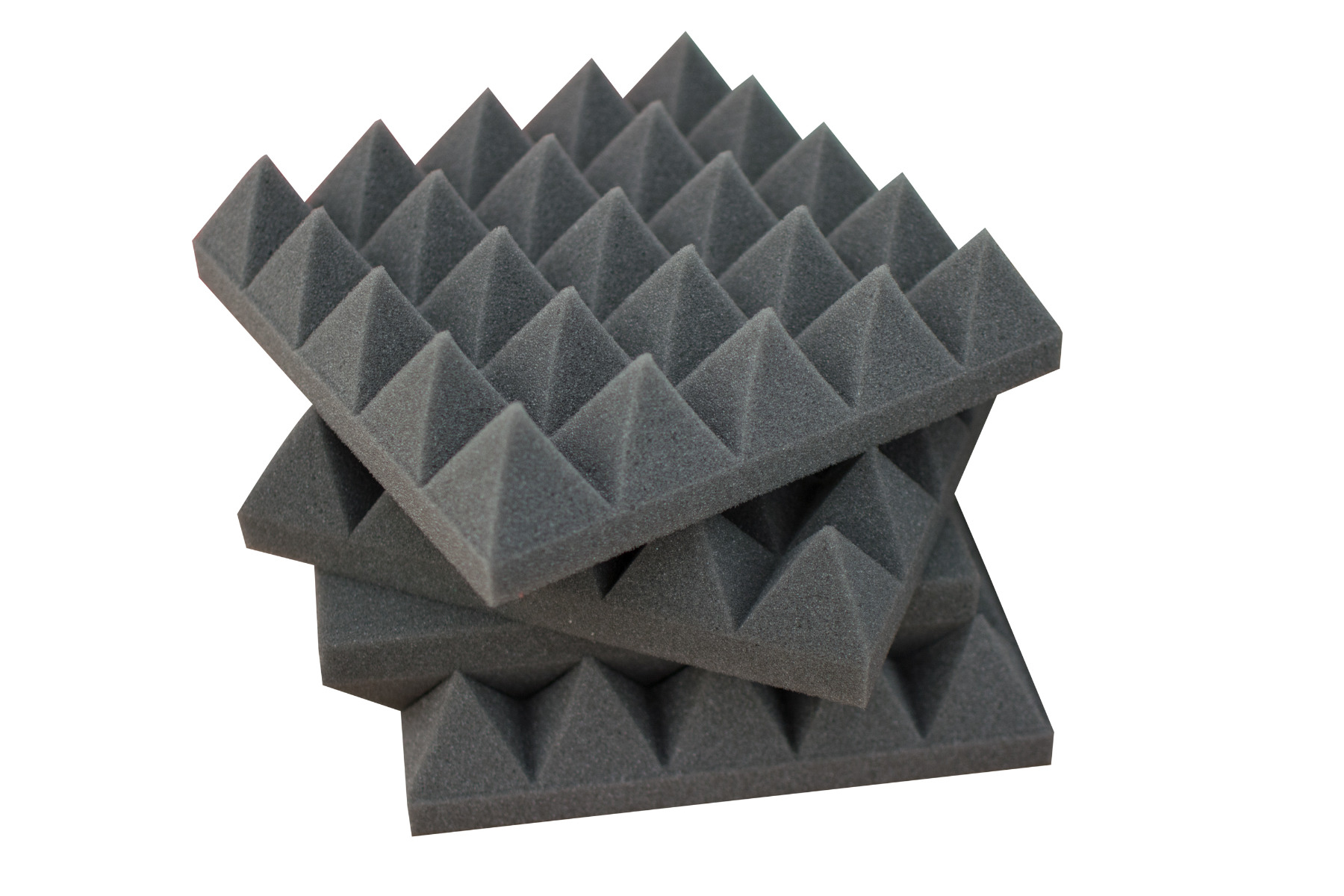 Il pannello piramidale è utilizzato per correggere echi e riverberi, agendo principalmente sulle medio-alte frequenze (500-4000 Hz). La sua geometria permette un assorbimento e una riflessione più uniforme delle onde sonore.